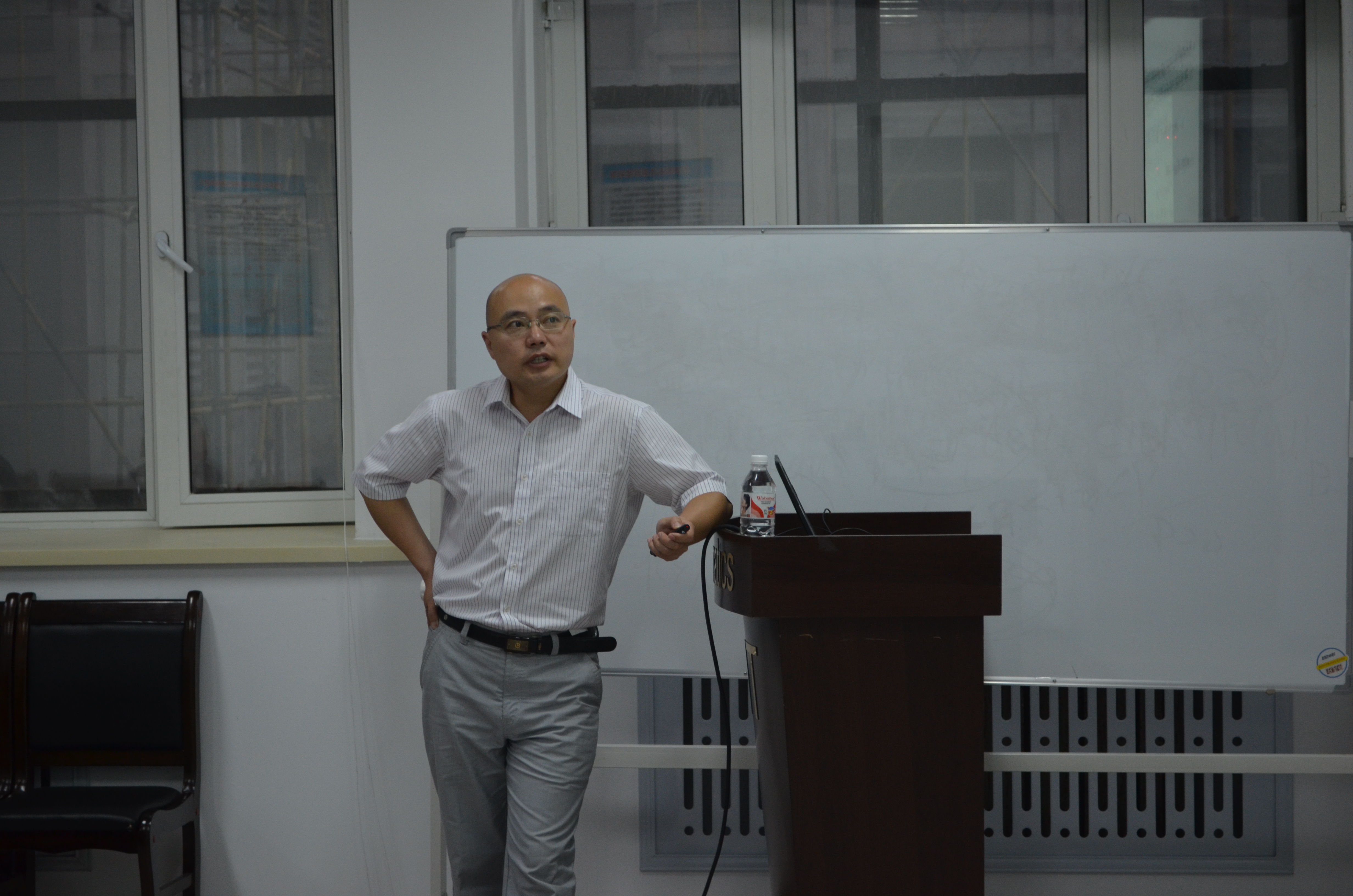 2014年7月21日上午9:30,吉林大学王春朋教授在数学系会议室(格物楼503)做了题为《Approximate controllability of a class of semilinear systems with boundary degeneracy》的学术报告,报告由孙杰宝副教授主持,数学系二十余位师生听取了学术报告并进行了热烈的讨论。