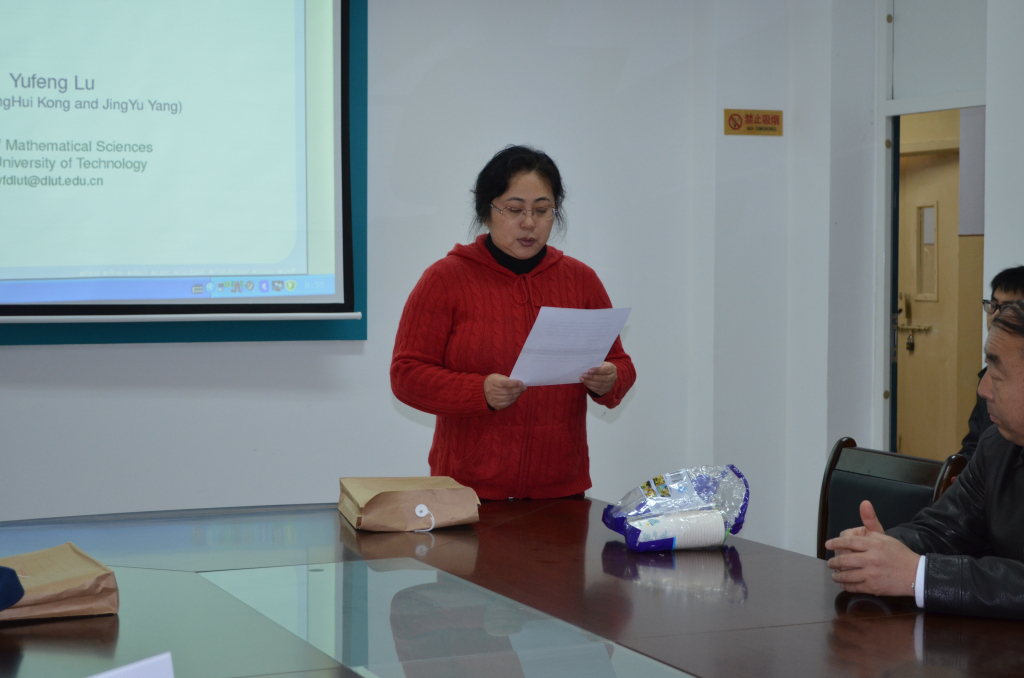 2015年4月12日上午8:30-9:30, 大连理工大学数学科学学院经理卢玉峰教授在数学系会议室(格物楼503),做了题为《Commuting Toeplitz Operators 》的学术报告,报告由数学系吴勃英教授主持,四十余位师生听取了报告并进行了热烈的讨论。