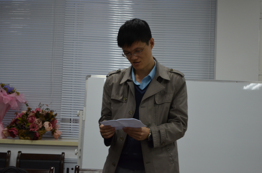 2015年4月24日下午16:00, 哈尔滨师范大学穆强副教授在数学系会议室(格物楼503)做了题为《Modular vertex operator algebras》的学术报告,报告由尹逊波副教授主持,数学系十余位师生听取了报告并就相关问题进行了讨论。