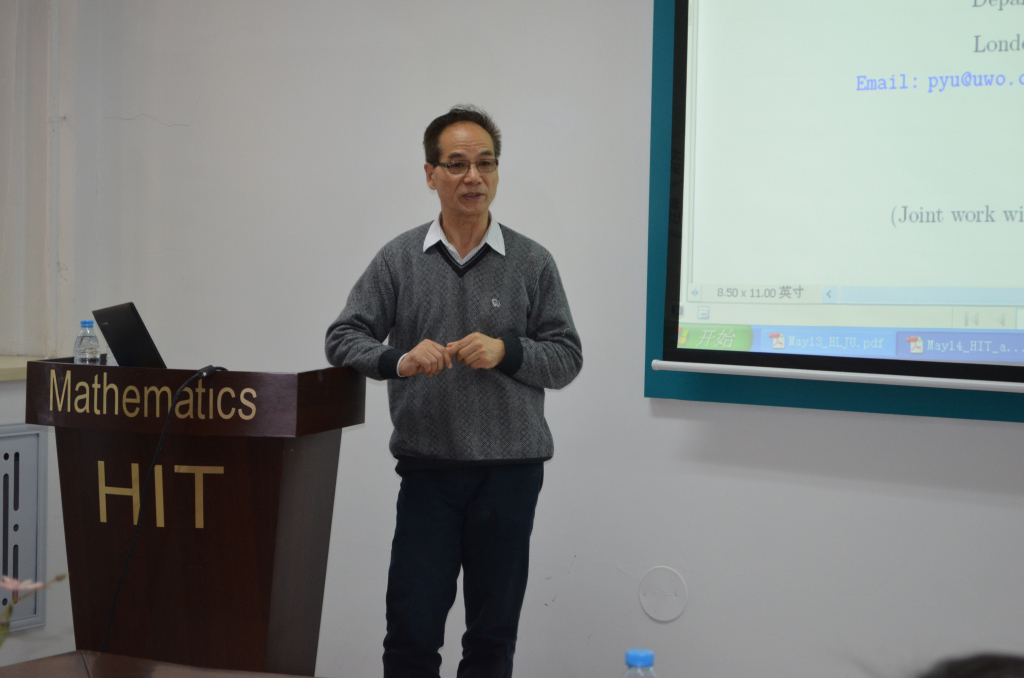 2015年5月14日上午9:00--10:00, 加拿大西安大略大学郁培教授在数学系会议室(格物楼503)做了题为《Dynamical analysis on a 2-dimensional disease model with convex incidence》的学术报告,报告由蒋卫华教授主持,数学系二十余位师生听取了报告,并进行了热烈的讨论。