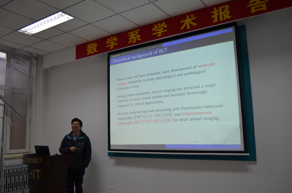 2016年42514:30-15:30,来自浙江大学的程晓良教授在数学系会议室(格物楼506)做了题为《 Some Numerical Methods for Inverse Problems in Bioluminescence Tomography》的学术报告,报告由王希连老师主持,数学系三十余位师生听取了报告并进行了热烈的讨论。