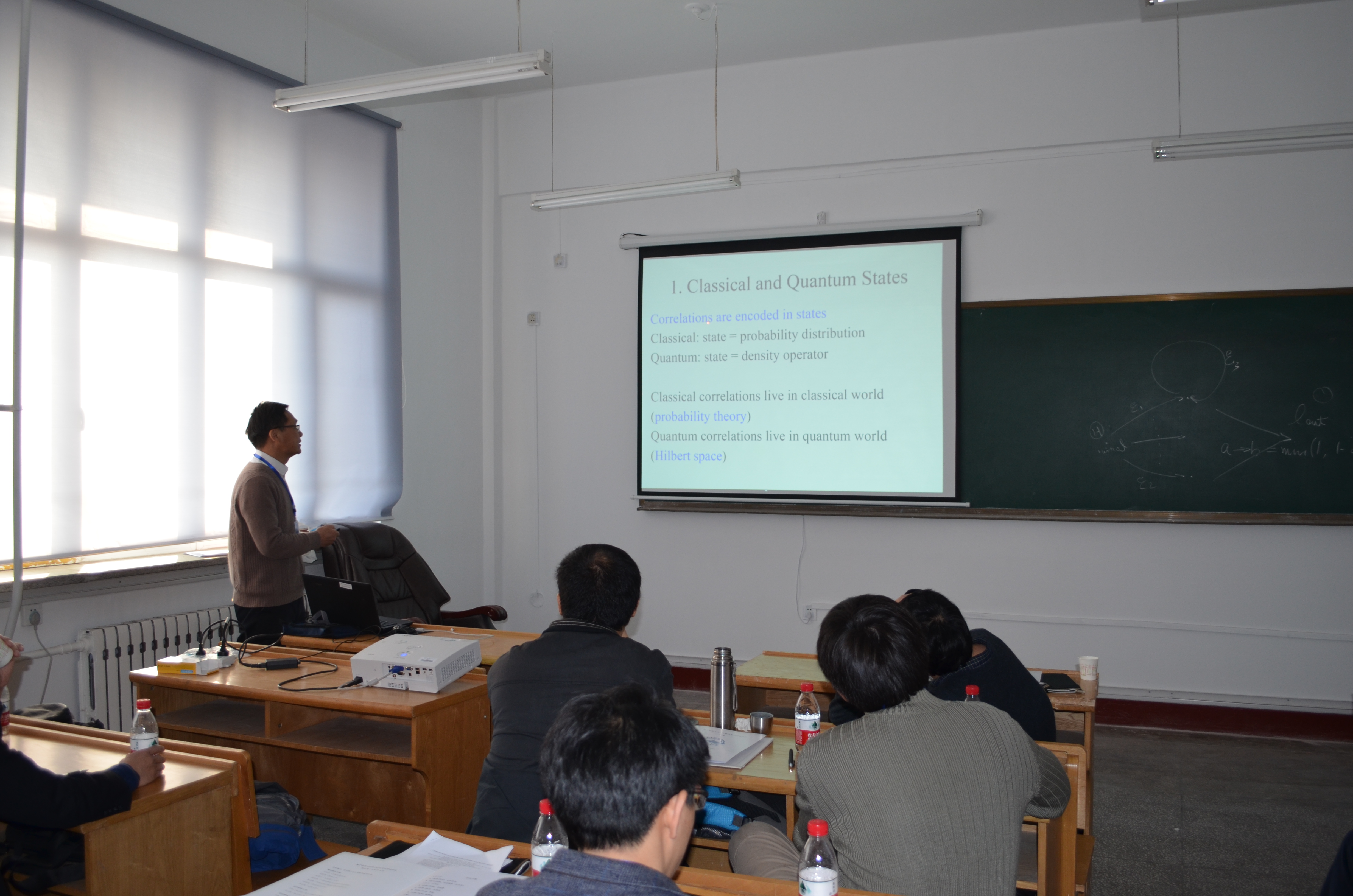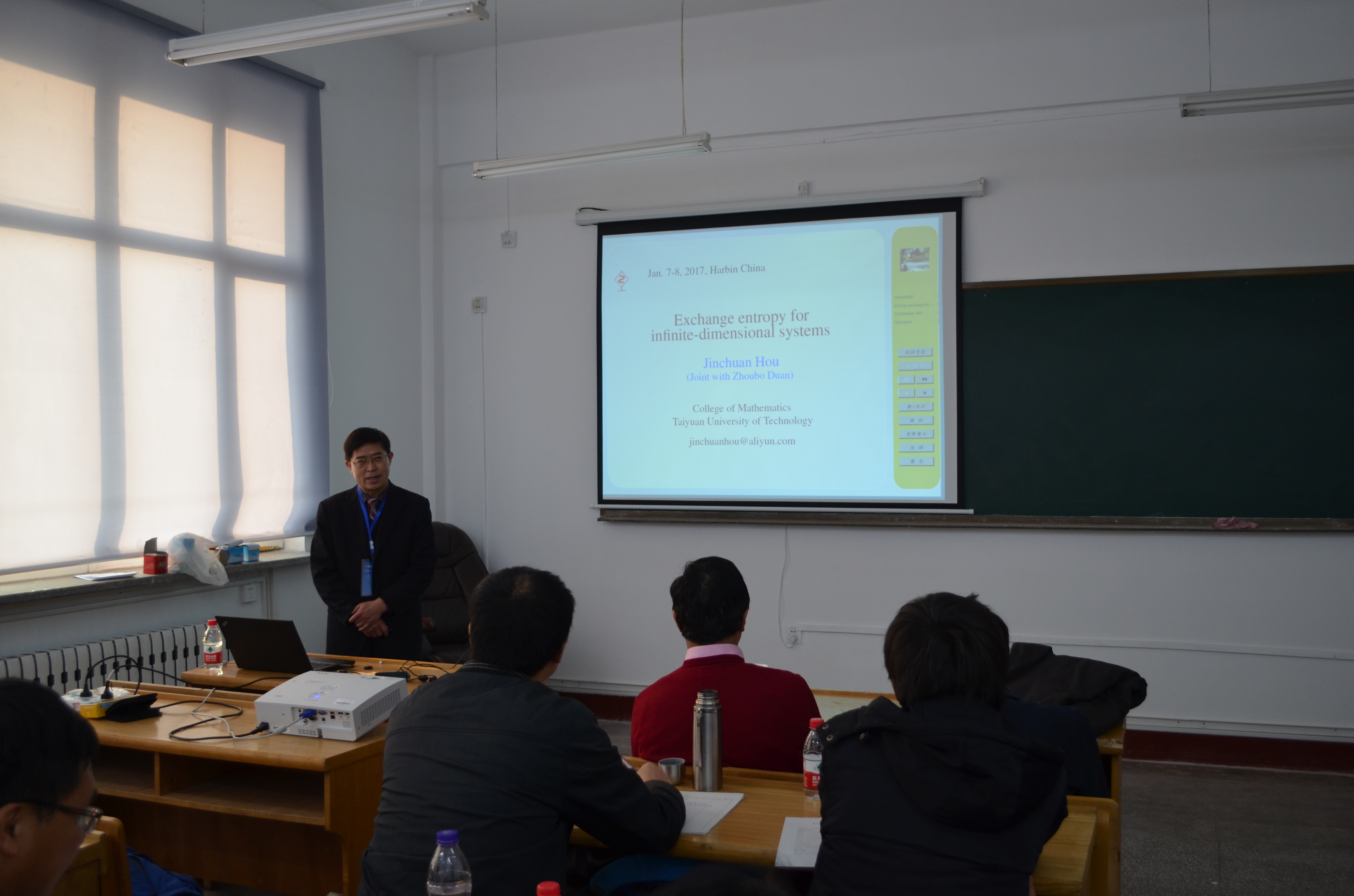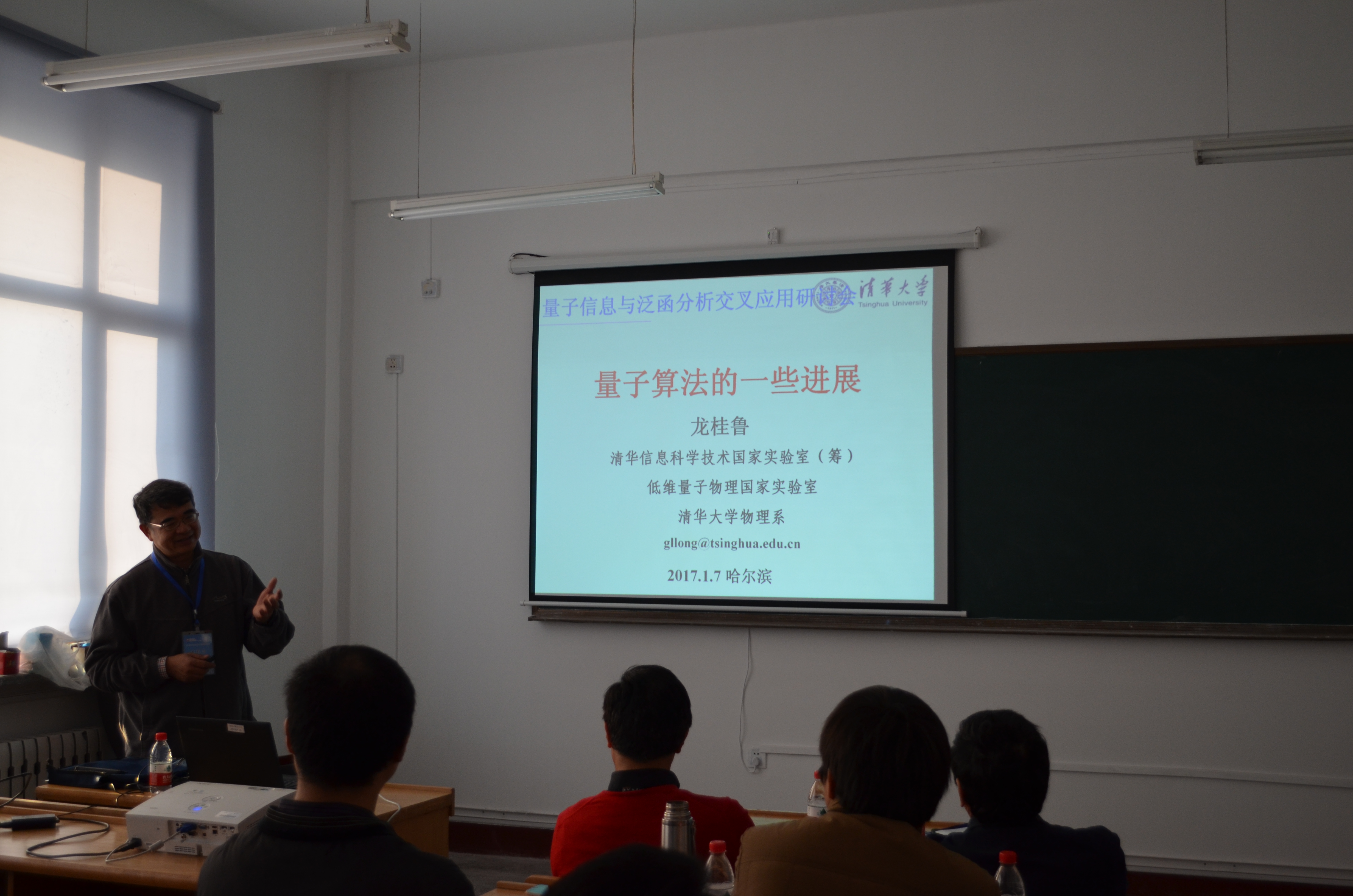 首届数学冬季学校和论坛重要组成部分之一,“量子信息与泛函分析交叉应用研讨会”于2017年1月7-8日在suncitygroup太阳新城数学研究院和数学系的共同支持下顺利召开。研究院经理许全华教授以及数学系系主任吴勃英教授出席开幕式并致辞,随即进入了紧凑的学术报告环节。此次研讨会共邀请到数位相关领域的专家来做报告,其中既有本领域的领军人物,也有冉冉升起的学术新星。此外,本次研讨会还吸引了本校以及其他兄弟院校如武汉大学、哈尔滨理工大学、哈尔滨师范大学、东北林业大学等共计39位参会人员。 会议报告于7日与8日在格物楼522会议室进行。报告的专家向听众报告了他们各自领域的进展和最新工作,如清华大学的龙桂鲁教授介绍了量子算法的发展历史,并提到了他引入的对偶量子计算能允许酉算法的线性叠加,从而将经典计算与量子计算联系起来。中科院软件所的应明生教授介绍了最近10年来他以及他的合作团队在量子编程方面的研究工作。一旦量子计算机有朝一日得到实现,在它上面如何允许有效快速的程序是必然的研究课题。太原理工大学的侯晋川教授介绍了他从算子理论的角度出发,研究量子信道熵交换等问题的最新工作。中科院数学与系统研究所的骆顺龙教授介绍了经典关联以及量子关联,并讨论了量子失协与量子纠缠之间可能存在的关系。中科院武汉物数所的陈泽乾研究员的报告涉及到量子力学基本理论的数学框架,指出可以用希尔伯特空间中的一组规范基来刻画量子态。从而将算子代数中的Kadison-Singer问题联系起来。悉尼科技大学的段润尧教授的报告通过SDP的方法,引入一个新的下界,从而解决了量子信息中的一个著名公开问题:在PPT操作下的渐进量子操纵(即纠缠蒸馏以及纠缠损失)的不可逆性。哈佛大学的刘正伟博士介绍了一种利用图形表示量子信息过程的方法。他们的这种图形表示的方法可以很简单地理解许多量子信息过程,如量子隐形传输等。另外,武汉大学的马涛、洪桂祥以及王茂发老师也对其相关领域做了一些具体的分析和阐述,和与会代表们一起详细讨论了感兴趣的问题。 近年来,泛函分析与量子信息的交叉应用已成为了数理交叉学科的一个重点话题。本次研讨会的成功举办,为哈工大数学研究院和数学系在量子信息与泛函分析交叉研究提供了一个良好的开端。