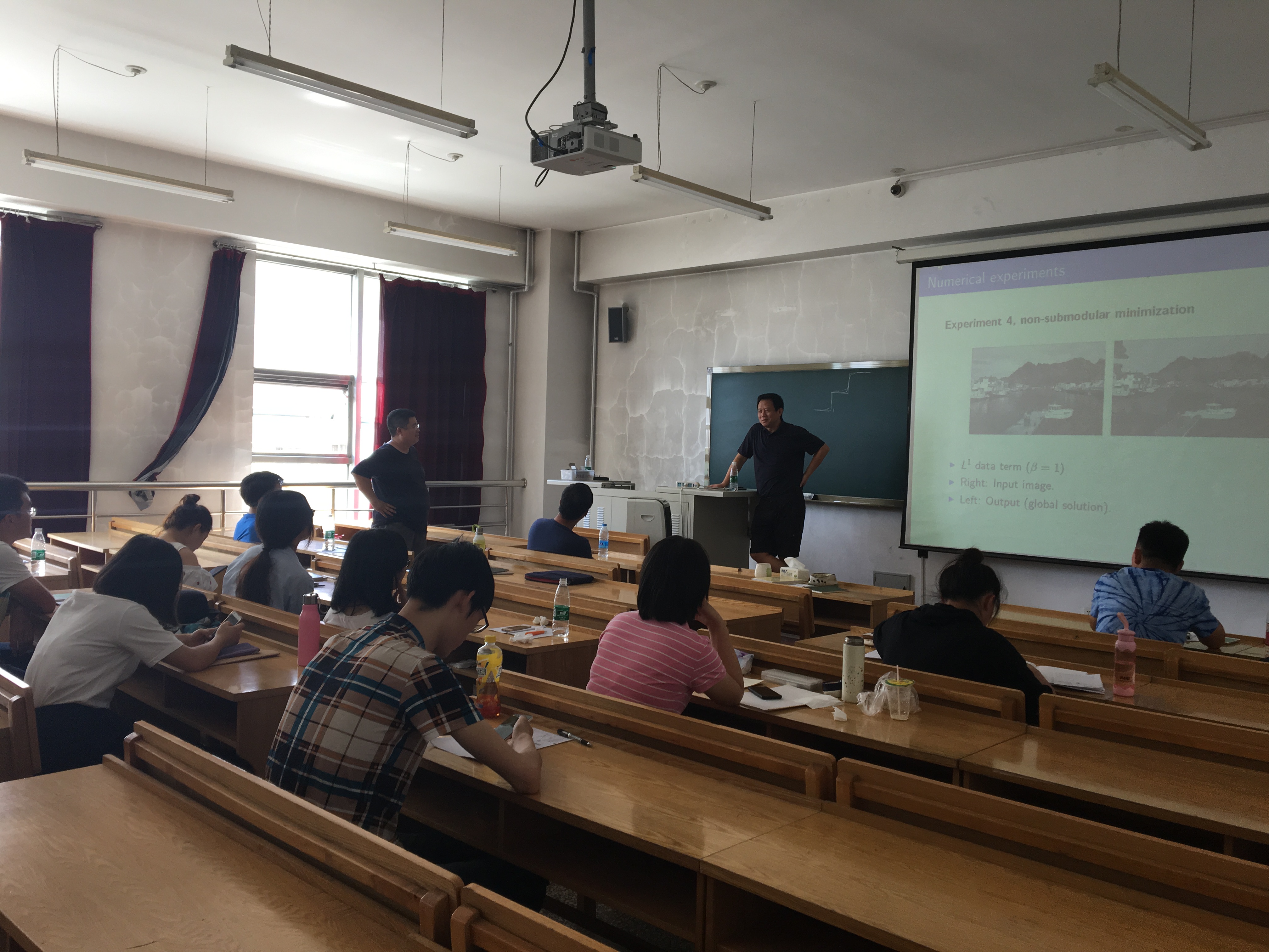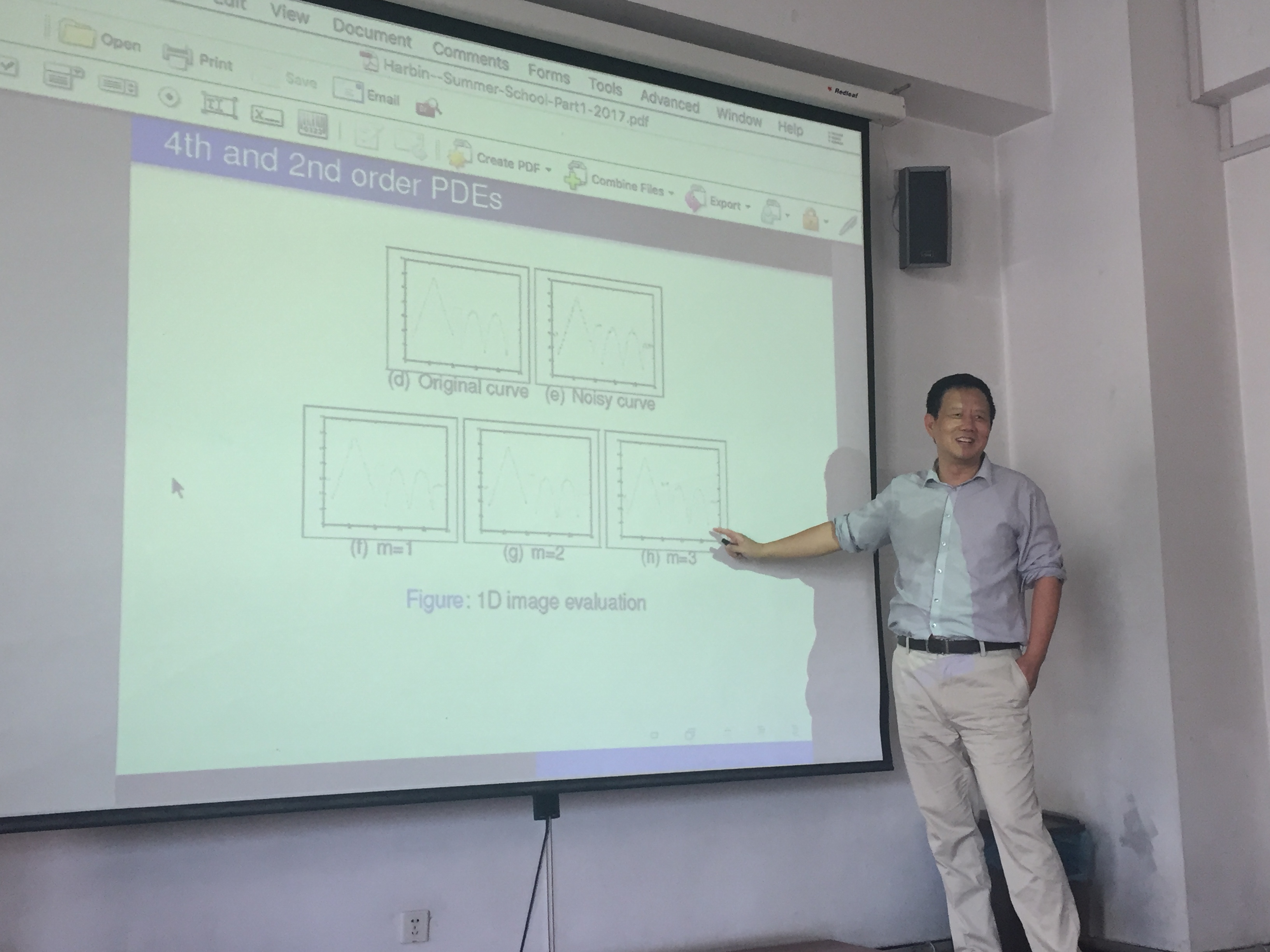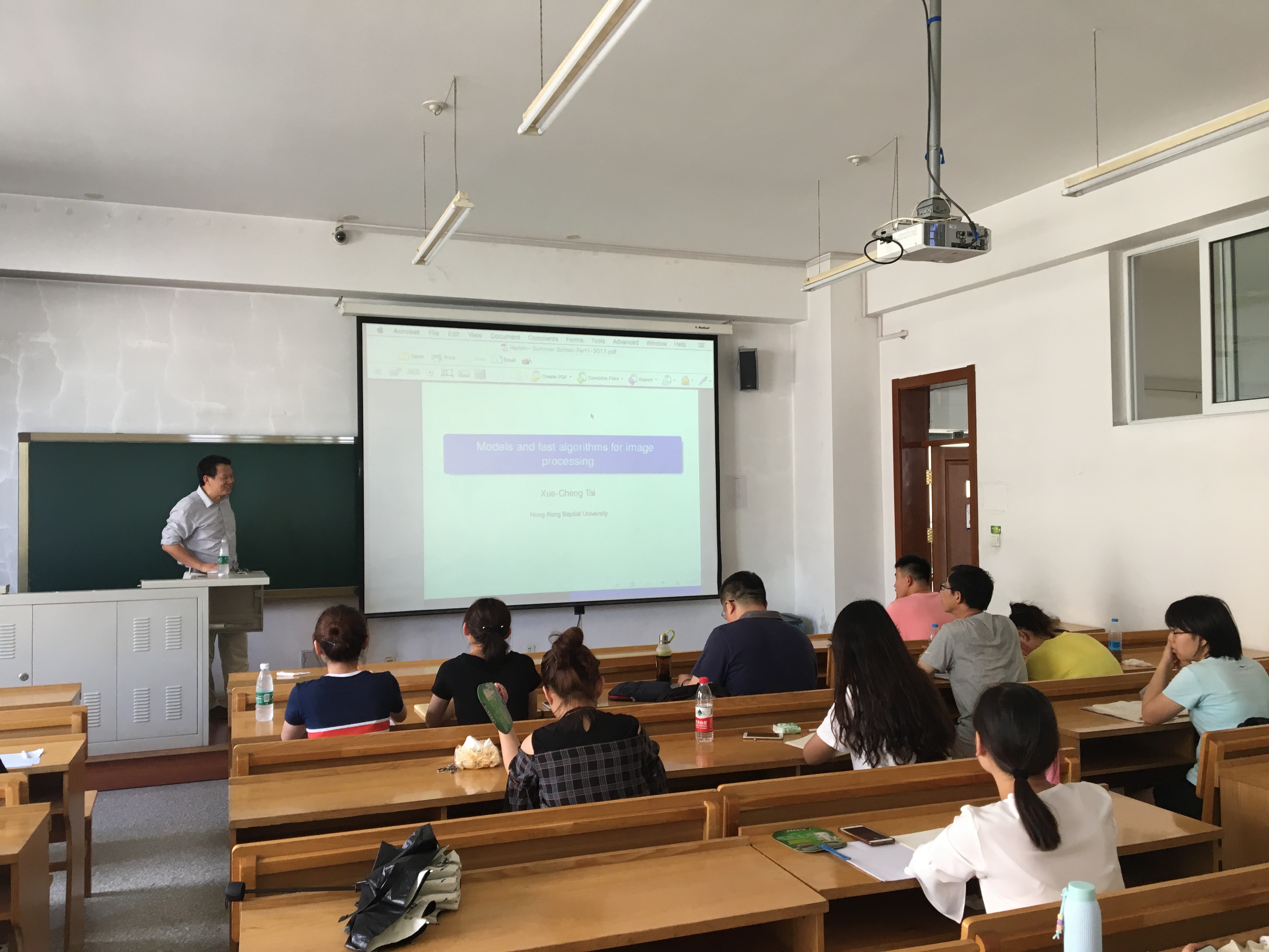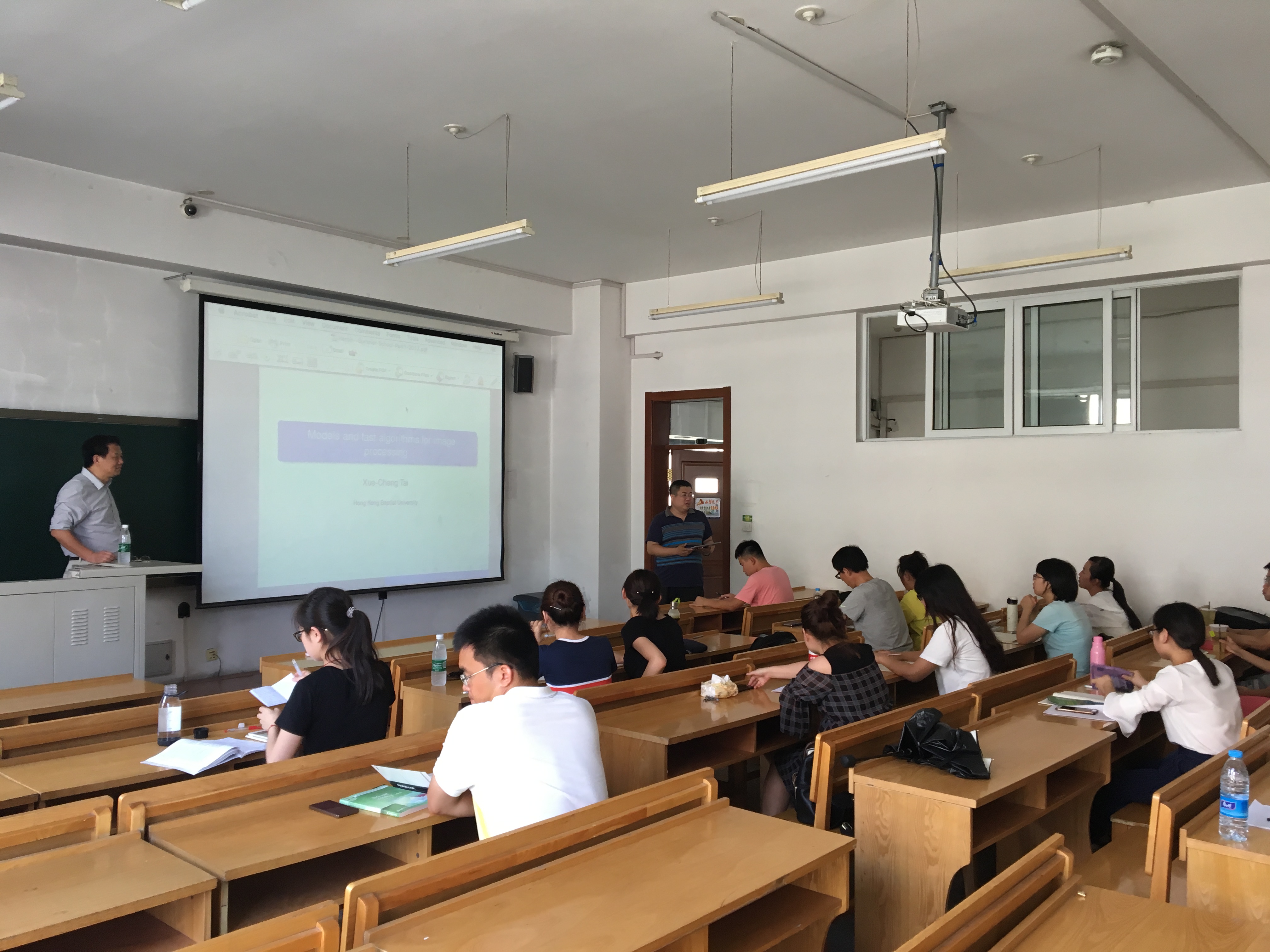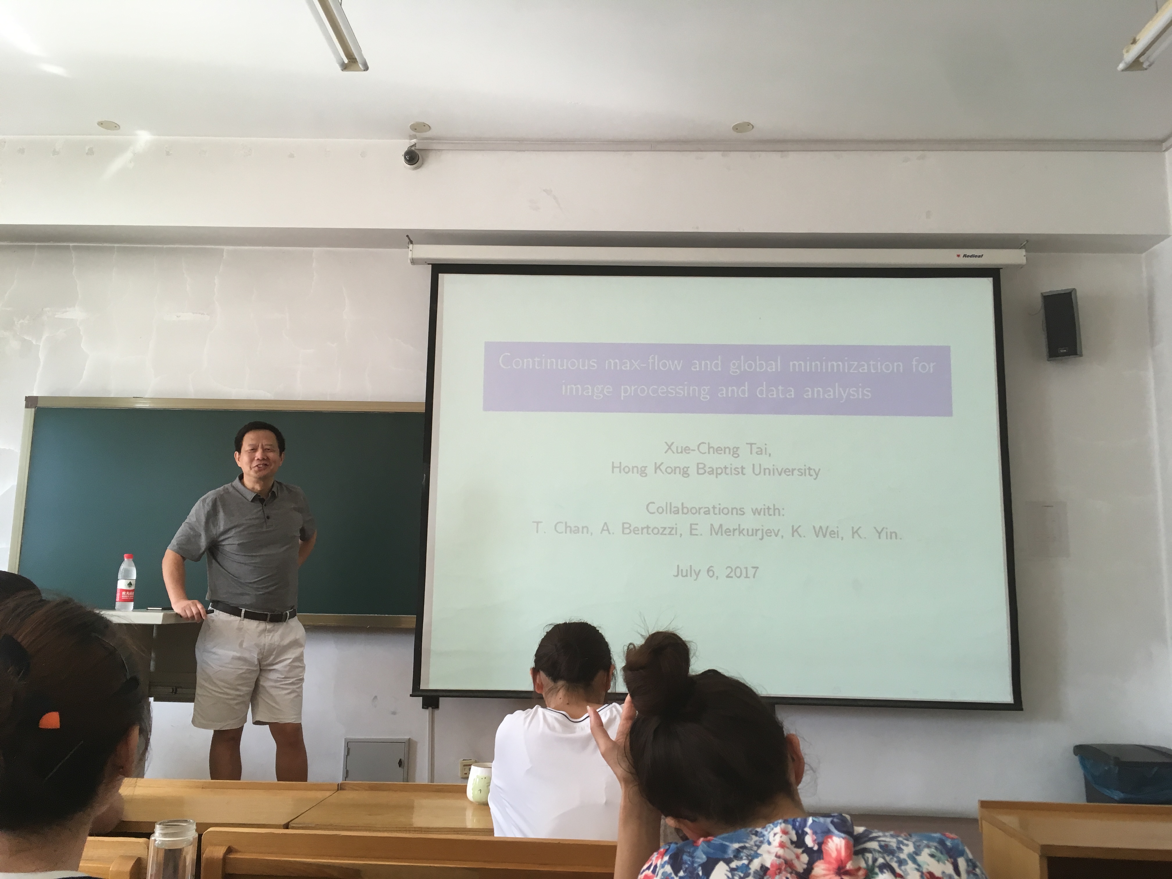 应suncitygroup太阳新城数学系的邀请,图像处理领域国际著名学者台雪成教授于2017年7月12-19日访问公司并作图像处理系列报告。来自校内外的学者和师生共50余人参加了此次学术报告和讨论。 此次系列学术报告以“Variational Models and Fast Numerical Schemes in Image Processing and Computer Vision”为主题,着重讨论了图像分割领域中的变分模型和相应的快速算法。台雪成教授从4个方面为与会师生介绍了图像处理领域中的众多问题和解决方法。 第一次报告主要介绍图像处理领域中的基本概念,包括图像恢复、图像分割等内容的定义以及目前面临的核心问题;第二次报告介绍了图像处理领域中的数学基础内容,例如偏微分方程、变分原理、有界变差等内容; 第三次报告回顾了图像处理领域中的经典问题和经典模型,例如用于图像恢复的ROF模型、MS模型、Euler’s Elastica模型等等;第四次报告主要围绕高阶偏微分方程以及其他基于几何性质的图像处理模型; 第五次报告讨论了图像处理的数值模型和方法,从最简单的梯度下降方法开始,台教授一步一步为在座师生介绍了算子分裂方法、AOS格式、对偶算法等传统数值算法;第六次报告则围绕目前较为主流的算法,例如分裂Bregman迭代、增广拉格朗日乘子法等算法进行讨论; 第七次报告台教授主要讲解了目前图像分割领域的新算法,例如分片常数水平集方法、图割方法等;第八次报告台教授介绍了他正在研究的图像分割领域中的前沿问题和方法,以及未来的工作。 每次报告之后,台教授都主持了报告相关问题的学术讨论,回答在座师生的各种问题。与此同时,台教授还主持了2次图像处理相关领域的学术讨论,分别为“高阶变分偏微分方程图像去噪方法”和“图像分割水平集方法”。参加学术报告的师生发言踊跃,交流思想,分享心得,进一步加深了对于图像处理中的数学理论与方法,以及在医学、交通、海洋探测等领域的应用前沿研究状况和最新研究成果的了解。 台教授风趣幽默的性格、深入浅出的课程和严谨认真的研究态度深深的感染了在座听众,使大家获益匪浅,有几位本科生在课后主动联系台教授,有意跟随他攻读博士并在图像处理领域作进一步的研究。同时,在场师生的热情也打动了台教授,他表示将和哈工大数学系建立长期的交流合作。 本次系列报告充分反映了图像分割领域中的数学理论与方法这一主题,以及最新发展和动态,对于进一步促进suncitygroup太阳新城与国内外同行之间的交流与合作起到了积极的作用。 此次活动是数学系SCI期刊编委校园行的一部分。
