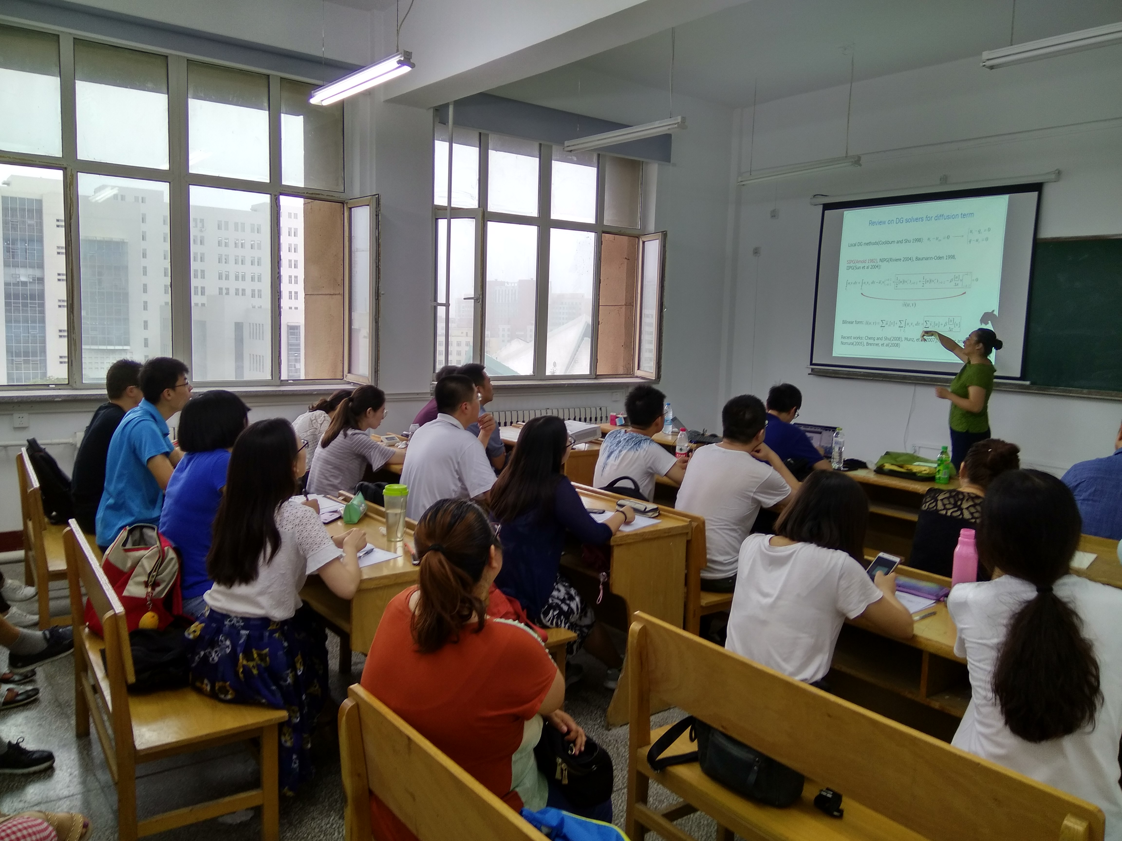 受国际合作处资助,应数学系吴勃英教授和数学系与数学研究院孟雄副教授邀请,美国爱荷华州立大学闫珏副教授近日访问了公司,并于2017年7月17日上午9:00-10:00在格物楼522会议室作了题为“Recent developments on direct discontinuous Galerkin methods”的学术报告,报告由孟雄副教授主持,数学系30余位师生听取了报告并进行了热烈的讨论。报告主要介绍了高阶直接间断有限元方法的最新进展,包括格式构造、稳定性分析、收敛性分析、超收敛性及其应用等。