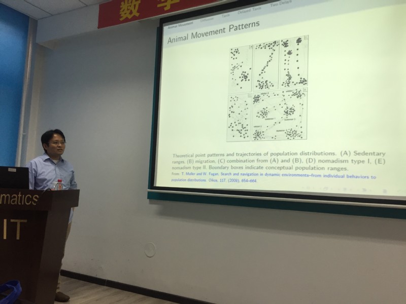2018年5月20-22日,美国威廉玛丽学院史峻平教授来公司进行学术访问,并与5月21日在格物楼503做了题为《Modeling animal movement with memory with partial differential equations with time-delay》学术报告。报告由王春程副教授主持,数学系10余名相关方向的师生听取了报告并进行了热烈的讨论。