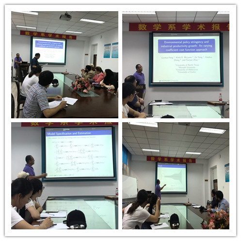 第二场报告时间为6月23日上午8:30-11:30,地点为格物楼503室,总共有两个报告“Environmental policy stringency and industrial productivity growth: A varying coeffcient cost function approach”、“墨尔本大学硕士生和旗下产业浅谈”,杨欧研究员的这两个报告围绕着环境政策约束与工业生产值增长等因素,依据变系数损失函数模型进行了分析,并对变系数系统做了深入的阐述,及就墨尔本大学的硕士生和旗下产业问题和参加报告的师生进行了交流。