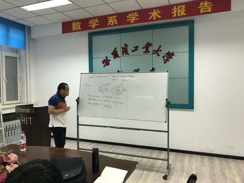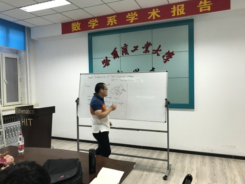 应数学系矫贺明的邀请,浙江工业大学数学系陈传强副教授访问了公司,并于2018年8月15日15:00-16:00在格物楼503报告厅进行了以Existence and Uniqueness of Smooth Solutions to the $L_p$-Dual Minkowski Problem为题的学术报告,介绍了近期关于$L_p$对偶Minkowski问题的一些进展。报告由矫贺明主持,数学系的师生在报告现场与陈老师进行了交流和讨论。