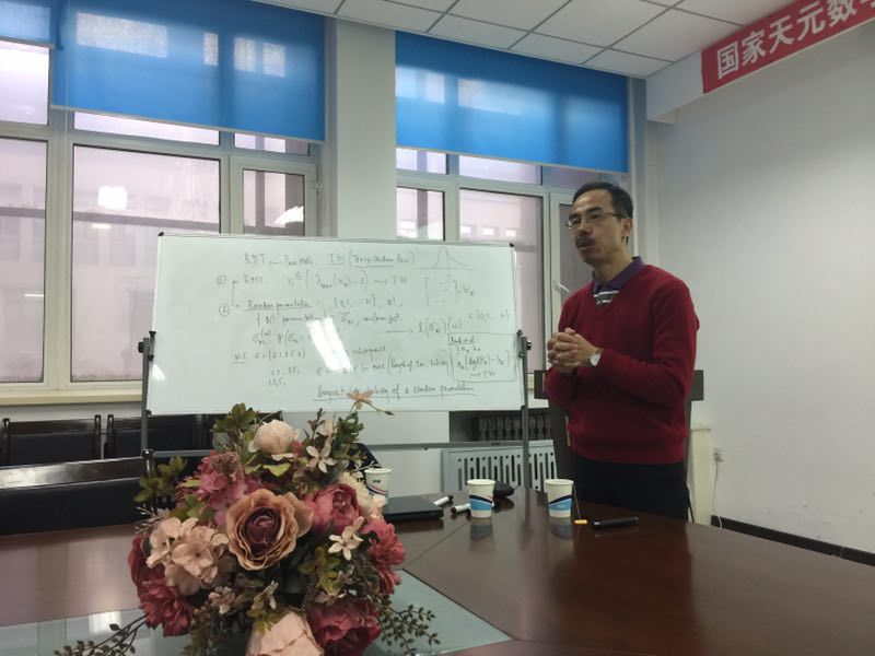 由国际合作处国际化基金资助,应数学系陈佳奇老师的邀请,香港大学姚建峰教授于2018年12月30日至2019年1月3日到公司进行了学术访问。姚建峰教授分别于1日2日上午9:00-10:30和10:30-12:00在格物楼503报告厅,下午14:30-16:00在正心楼215室共做了三场讲座。姚建峰教授的报告内容涉及概率统计学科的前沿方向大维随机矩阵,介绍了该方向的背景、基础理论、相关的统计方法及其应用,重点介绍了大维因子模型的统计推断。报告由陈佳奇老师主持,数学系相关方向的师生参加了报告会并与姚建峰教授进行了热烈的学术交流与讨论。
