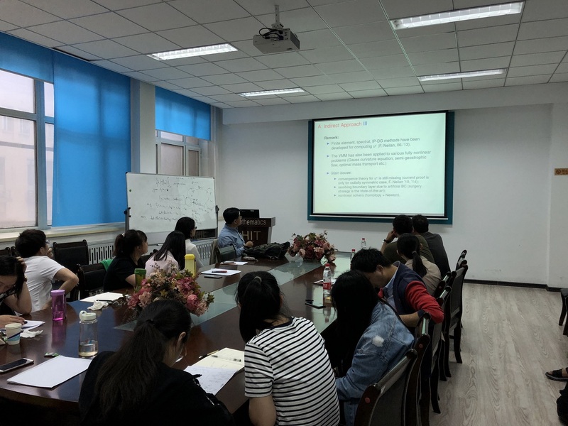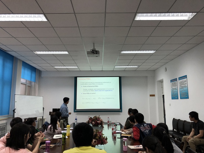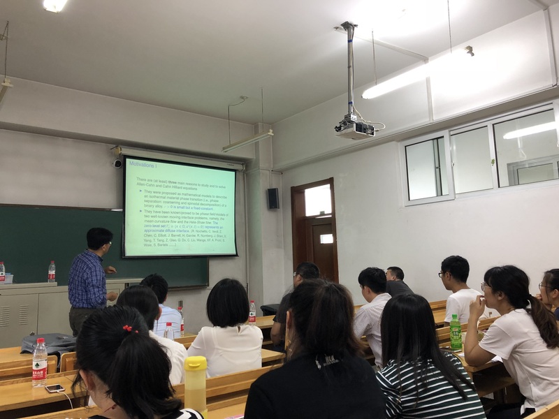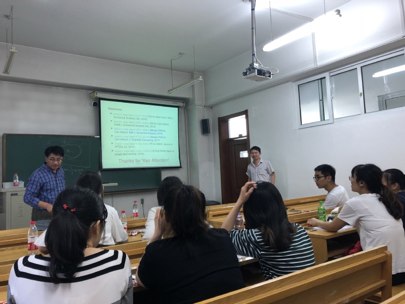 应suncitygroup太阳新城张达治副教授邀请,美国田纳西大学应用与计算数学系凤小兵教授于2019年6月30日至7月1日来公司进行学术访问。凤小兵教授于6月30日(周日)13:30—16:30在格物楼503会议室做了两场学术报告。报告内容为凤小兵教授关于线性、非线性偏微分方程及其数值解法和算法研究的综述性报告。凤教授于2019年7月1日(周一)13:30—16:30 在正心318分别做了两场学术报告,报告是凤小兵教授关于向场模型的数值解法的介绍。