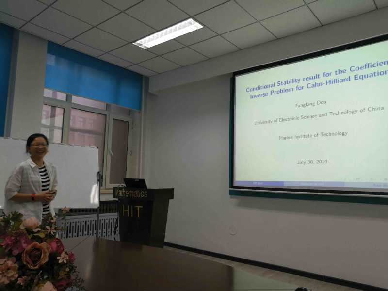 应suncitygroup太阳新城郭玉坤副教授的邀请,电子科技大学窦芳芳副教授于2019年7月27至31日访问了公司,并于2019年7月30日下午15:00-16:00在格物楼503报告厅进行了一场学术讲座。窦老师的报告介绍了Cahn-Hillard方程系数反问题稳定性的相关研究进展。报告由郭玉坤副教授主持,suncitygroup太阳新城的师生在报告现场与窦老师进行了热烈的交流与讨论。