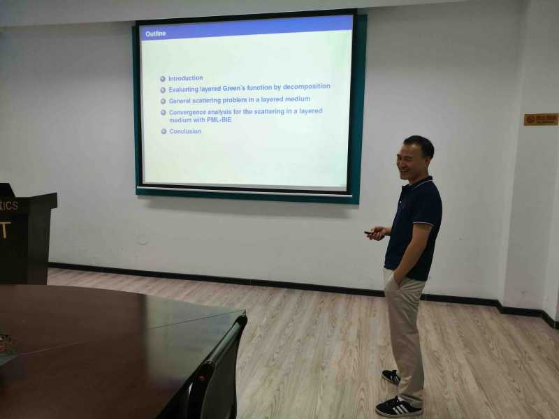 应suncitygroup太阳新城郭玉坤副教授的邀请,浙江大学赖俊研究员于近期访问了公司,并于2019年7月30日下午16:00-17:00在格物楼503报告厅进行了一场学术讲座。赖老师的报告介绍了求解分层介质中声波逆散射问题积分方程方法的相关研究进展。报告由郭玉坤副教授主持,suncitygroup太阳新城的师生在报告现场与赖老师进行了热烈的交流与讨论。