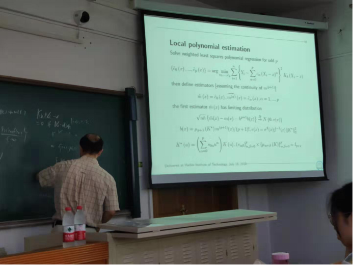 第五场报告时间为7月18日下午8:30-12:00,地点为诚意楼202室,报告主题为“Multivariate kernel, the curse of dimension, and additive model”,重点讲述了核密度估计在多维甚至高维情形的应用,高阶多元核的理论及存在的问题,即“维度灾难”,并介绍了可加模型的相关知识。