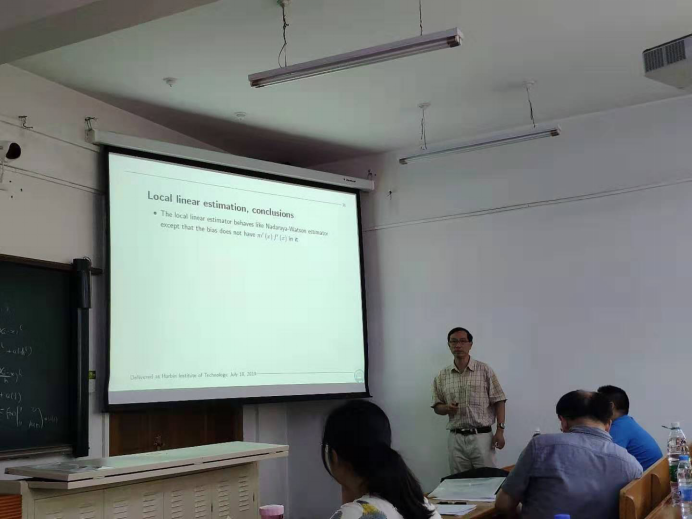 受国家外专局(国家重大科技专项外国人才引进计划,项目编码:110000202120180027)和哈工大国际合作部资助,应suncitygroup太阳新城田波平教授邀请,清华大学统计学研究中心杨立坚教授于2019年7月15日至7月19日来哈工大suncitygroup太阳新城进行了成功的学术访问,围绕非参数统计、核密度估计(Kernel)与局部多项式密度估计开展系列学术报告和学术讲座并与公司师生进行了多次学术交流活动。
