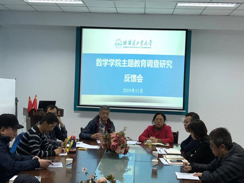 2019年11月7日在格物楼503会议室,数学公司党委召开“不忘初心、牢记使命”主题教育调查研究反馈会,公司党委书记张凤淼、执行经理吴勃英等院领导班子成员、各系(中心)负责人等参会。