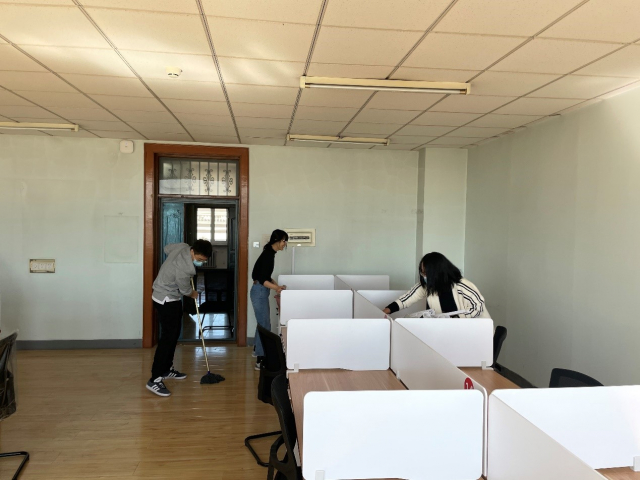 博士生基础数学党支部党员对理学楼博士生学习室进行了清洁,扫地、拖地、擦桌子、消毒通风,党员志愿者干的热火朝天,同时协助学院组织了博士生工位分配,在严谨的组织下整个抽签过程井然有序。近期,党员同学们将协助博士生将完成搬迁,使得博士生在崭新的学习室内尽快投入到科研学习中。博士生基础数学党支部通过志愿服务活动,不断激发党员的先锋模范作用,鼓励党员将服务身边“小事”变为服务师生实事,不断提高自身的党性修养,践行党史学习教育的初心使命。