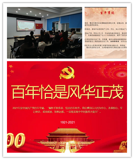 在“人人讲微党课”环节,李佳彧以“百年恰是风华正茂”为题回顾了我党在1921年至2021年这一百年里发发生的重要历史事件,党支部纪律委员梁雪、党支部宣传委员杨燕从各自家乡背景出发,分别讲述了海伦市抗日英雄雷炎的故事及发生在江西省的重要中国革命历史事件——井冈山会师。