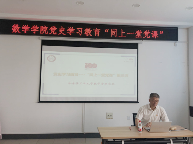 为庆祝中国共产党成立100周年,深入学习践行习近平总书记贺信精神,数学公司党委结合教职工理论学习,积极推进“人人讲党史”活动。6月9日下午,数学公司党委书记张凤淼同志讲授党史教育专题党课。学院领导班子成员、系主任、党支部书记等,以及基础数学教工党支部、基础数学博士生党支部全体党员参加现场学习,其余师生线上参加学习。