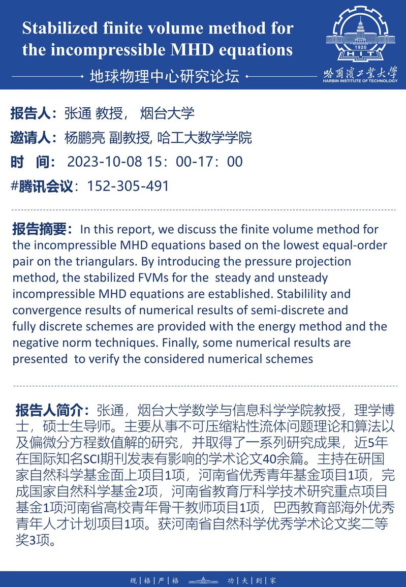 烟台大学张通教授关于不可压缩磁流体数值解法的学术报告