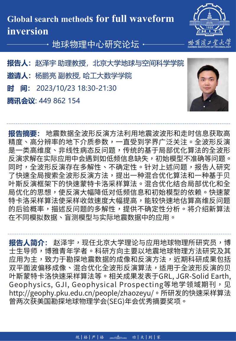 北京大学赵泽宇研究员关于全波形反演的学术报告