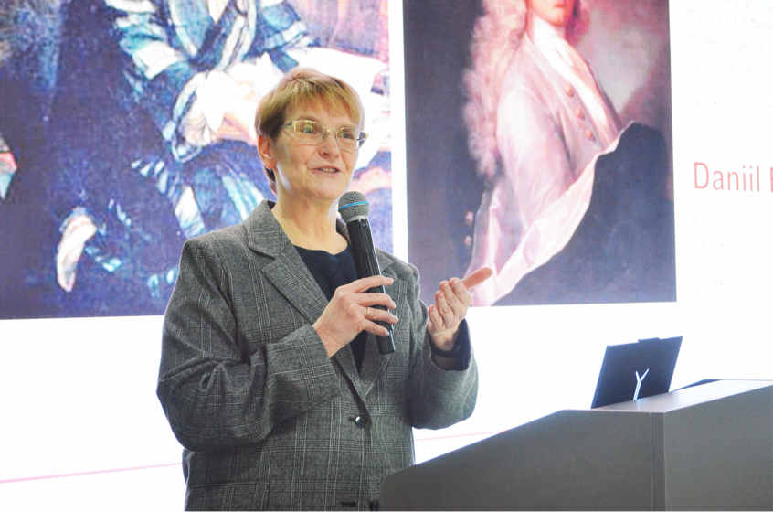 会后,叶莲娜·库斯托娃教授为在场师生进行专题讲座,阐述了圣大数学力学系的发展历程、主要研究方向,介绍了其硕士项目的课程结构、科研训练模式与国际员工培养模式,现场交流互动热烈。